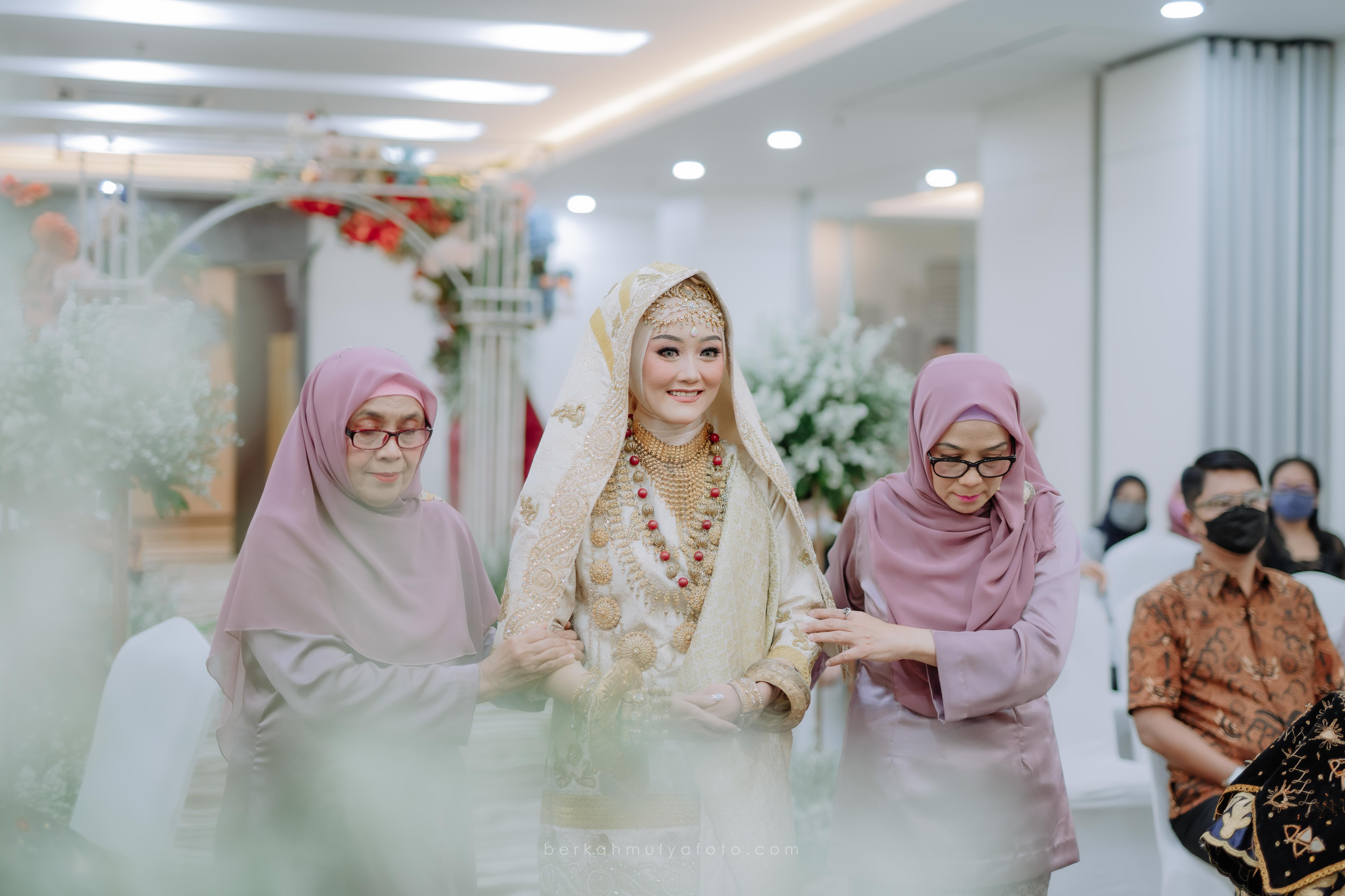 Awali acara intimate akad nikah dengan proses menyambut kedatangan mempelai pengantin pria dan berlanjut hingga ijab kobul.